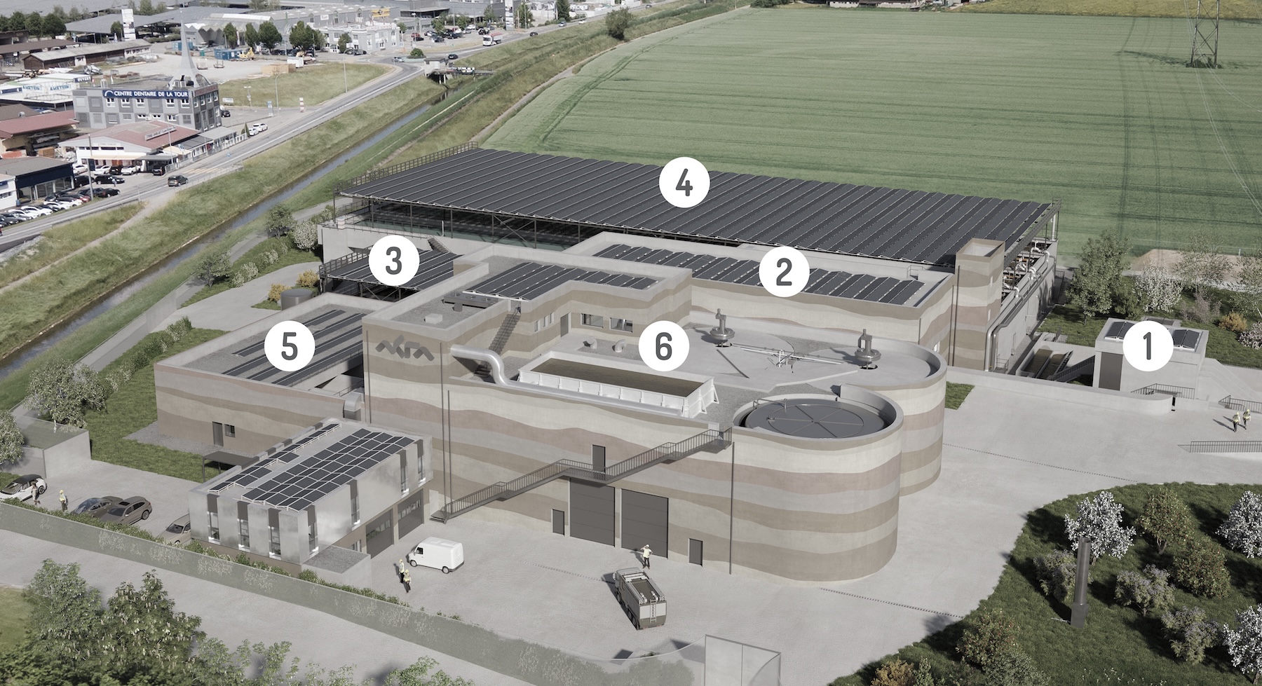 Ces boues sont ensuite introduites dans un digesteur où elles sont chauffées et fermentent. Le processus produit du biogaz qui alimente une installation de production d’électricité et de chaleur et crée ainsi une partie de l’énergie nécessaire au fonctionnement de la STEP.